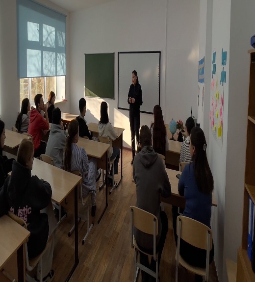Астана қаласы Сарыарқа АПБ ЖПҚБ ЮПБ УПИ полиция лейтенанты Маутбекова Шұғыла Аманқызы 2025 жылдың 19 қараша күні «Жасөспірімдер арасында қылмыстық құқық бұзушылықтың алдын алу тақырыбында «Nº39 кешкі (ауысымды) мектеп» КММ оқушыларына дәріс оқыды.
